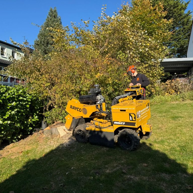 Wir entfernen Baumstümpfe effizient und bodenschonend – per Fräse. So entsteht Platz für Neupflanzung, Rasen oder Gestaltung ohne Stolperfallen und Wurzelreste.