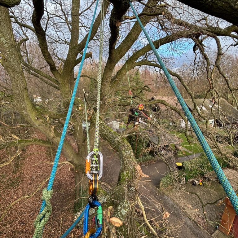 Mit moderner Seilklettertechnik erreichen wir auch schwer zugängliche Bäume schonend und sicher – ohne große Maschinen. Ideal für enge Gärten, Hanglagen oder empfindliche Bereiche, in denen Präzision gefragt ist.
